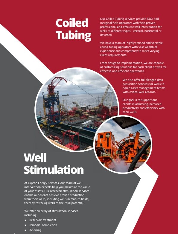 Our Coiled Tubing services provide IOCs and marginal field operators with field proven, professional and efficient well intervention for wells of different types – vertical, horizontal or deviated