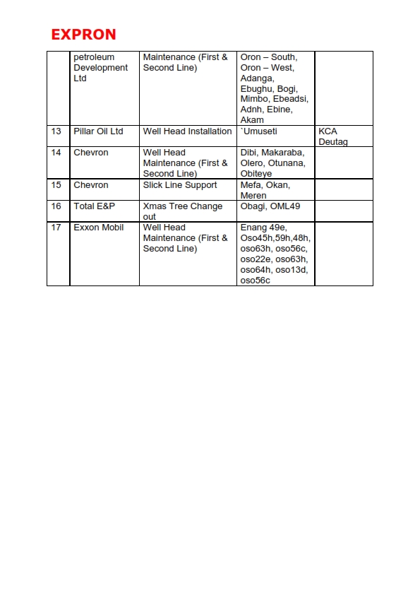 range of well maintenance activities.